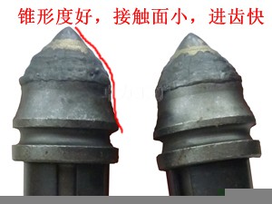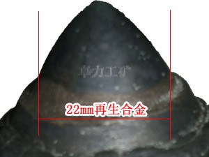 優(yōu)勢(shì)一: 齒尖鑲有22mm再生合金, 與新合金相比較價(jià)格便宜, 截齒堅(jiān)固耐磨 | 優(yōu)勢(shì)二: 合金周圍融覆耐磨焊層, 有效保護(hù)好合金不脫落, 更長(zhǎng)久耐用 |