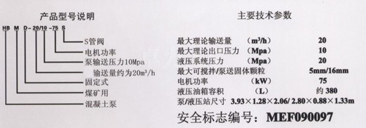 HBMD-20/10-75S型煤礦用混凝土輸送泵/砂漿泵,是我公司根據(jù)煤礦行業(yè)需求最新研制的一種適用于煤礦井下高壓,長距離物料輸送的特殊柱塞泵。